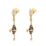 Topos en plata ley 950 y bronce con baño de oro de 24k, baño de rodio y oro negro e incrustación de microcristales color cristal.