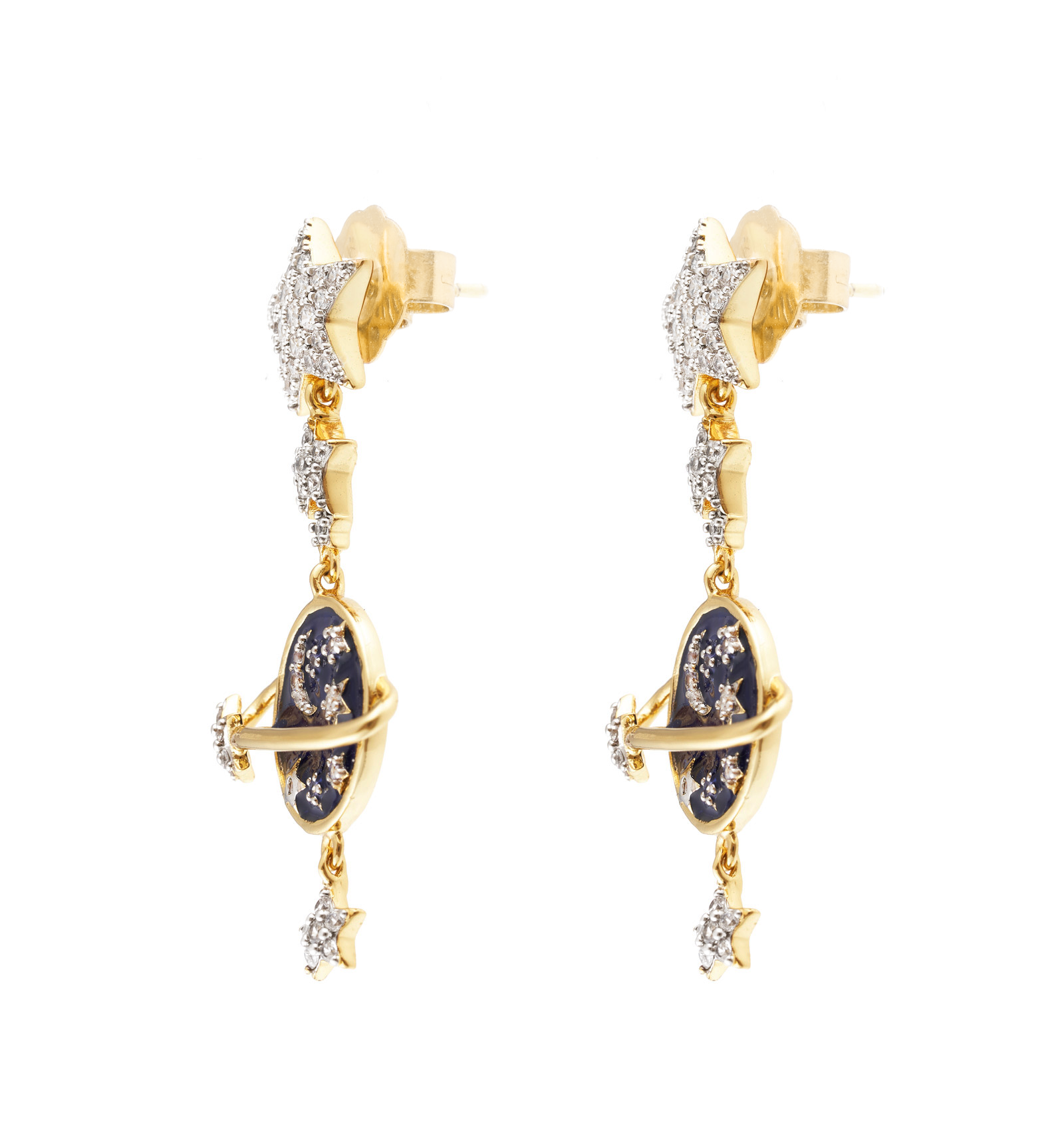 Our jewelry is made from silver and bronze, coated in 18k gold and rhodium, and adorned with natural stones, crystals, and select enamels.