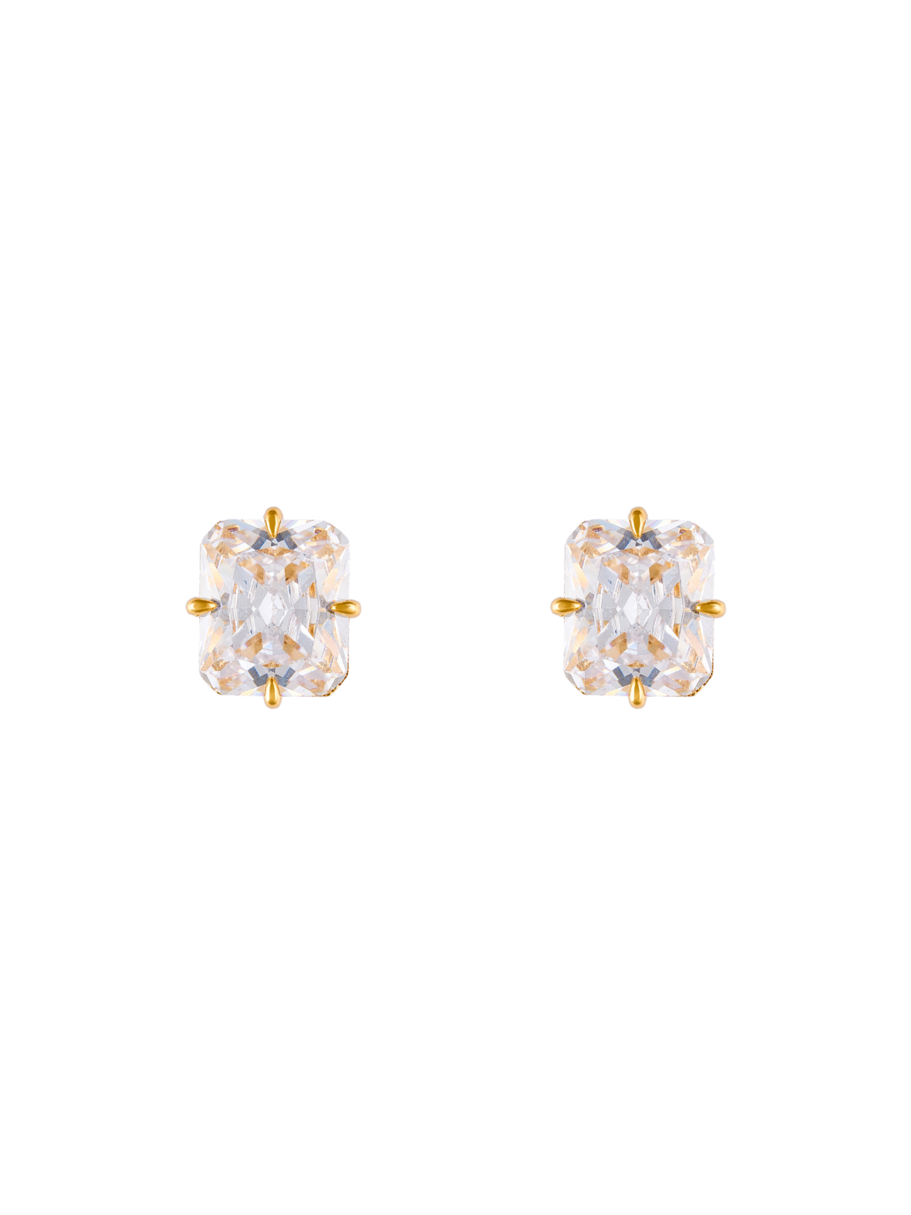 Lleva contigo una joya que habla de estilo, encanto y atemporalidad. Los Topos Rectangular Cristal Dorados están elaborados en metal bronce con baño de oro de 18 kilates e incrustación de cristal facetado, este accesorio captura la esencia de la elegancia moderna con un aire chic y sofisticado.