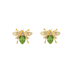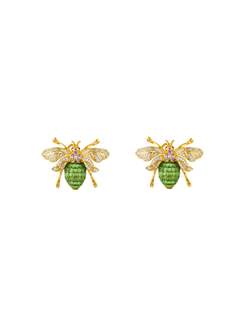 Studs in 900 silver and bronze with rhodium plating, inlaid with emerald-green, amethyst, ruby, and crystal-colored microcrystals.