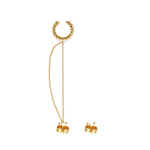 Complementa tu outfit con el Ear cuff Baguette Chain Mimosa, elaborado en metal bronce con baño de oro de 18K e incrustación de microcristales color cristal.