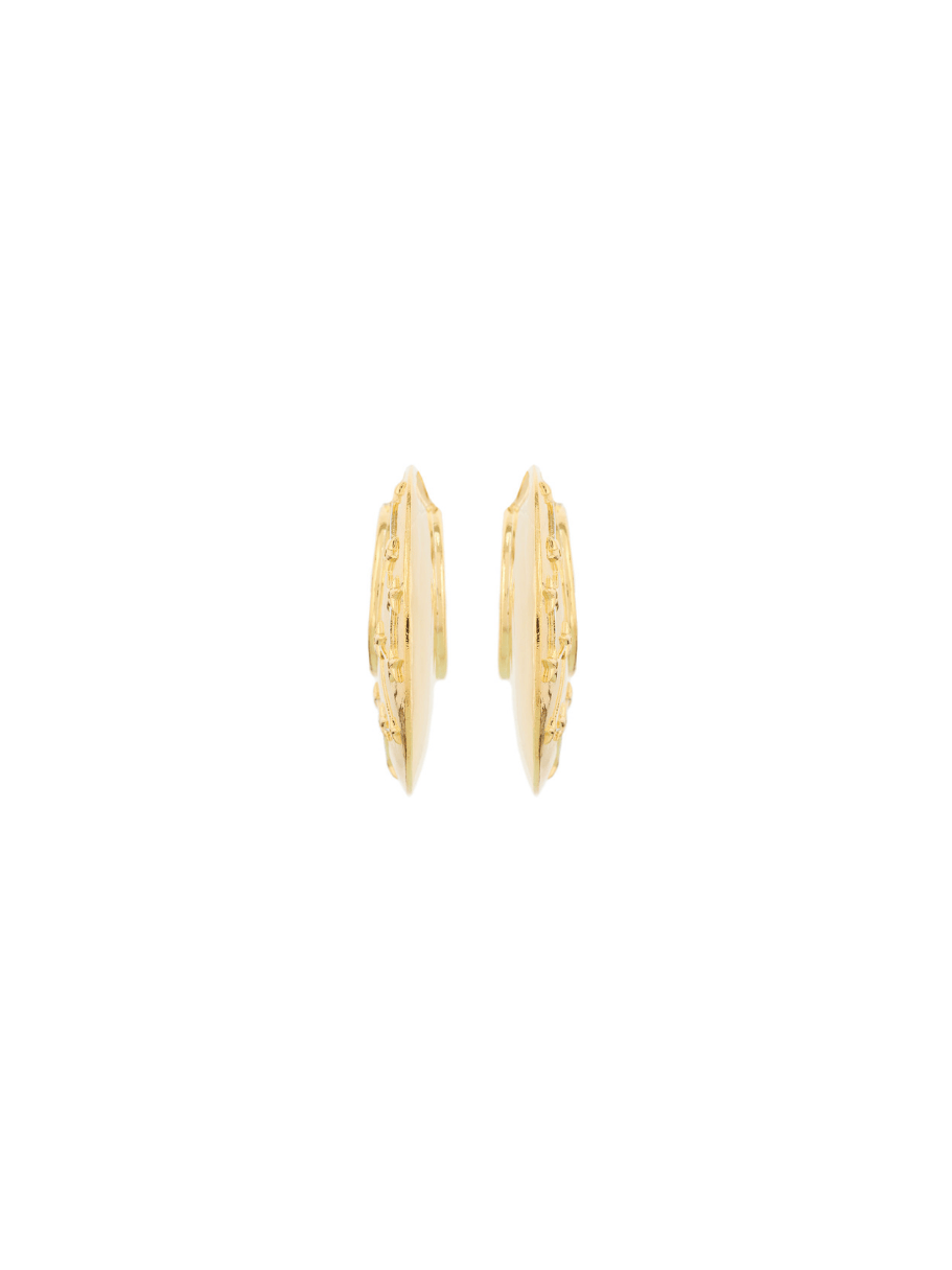 Aretes en plata de ley 990 y bronce con baño de oro de 24k e incrustación de microcristales color cristal.