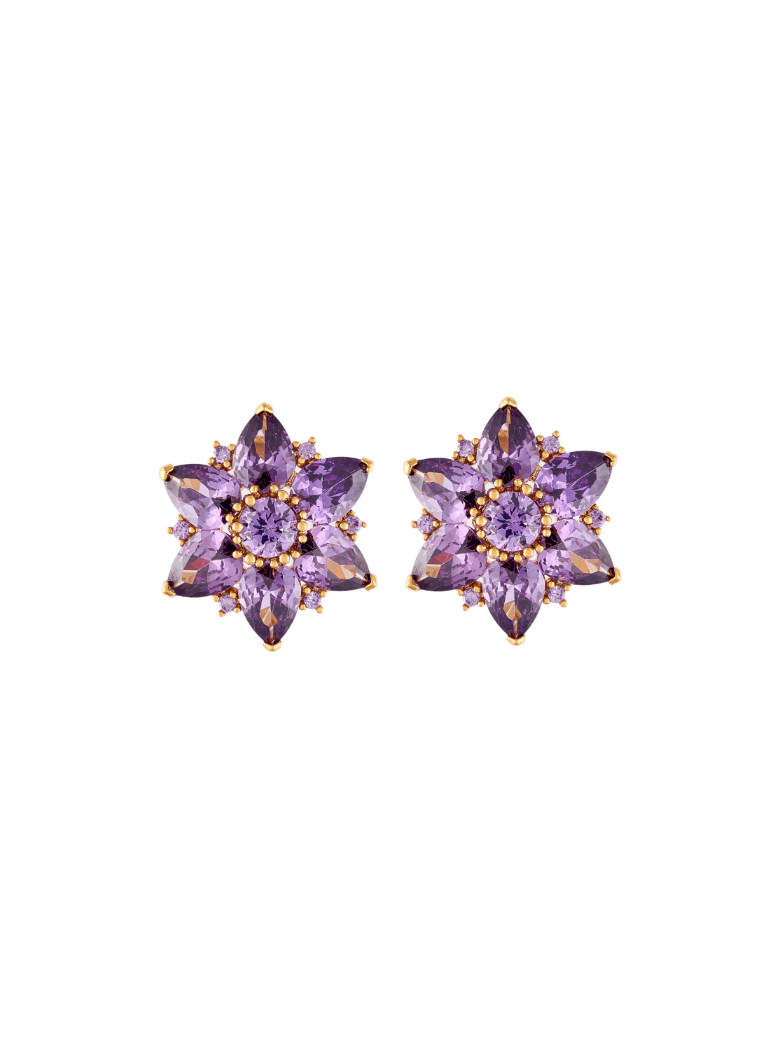 The Amethyst Lotus Flower Stud Earrings are perfect to brighten your days and add a chic twist to your nights. These delicate earrings, plated in 18K gold, celebrate natural beauty with a timeless design that evokes serenity and sophistication. Their faceted amethyst-toned crystals capture light with magical sparkles, striking the perfect balance between modern and romantic. Crafted in bronze with 18K gold plating and zircon inlays.