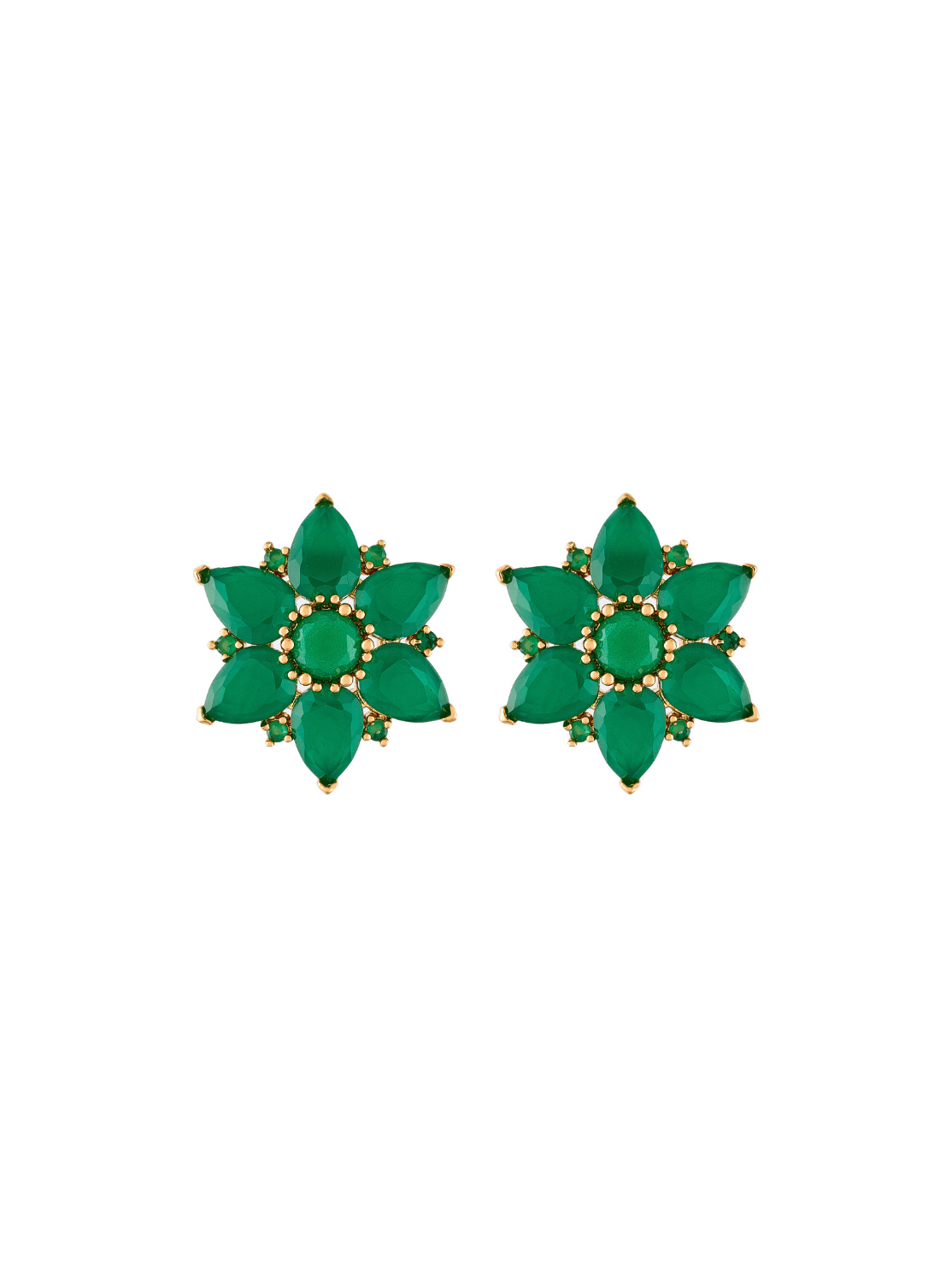 The Milky Green Lotus Flower Stud Earrings are perfect to brighten your days and add a chic twist to your nights. These delicate earrings, plated in 18K gold, celebrate natural beauty with a timeless design that evokes serenity and sophistication. Their faceted crystals in emerald-green tones capture light with magical sparkles, striking the perfect balance between modern and romantic. Crafted in bronze with 18K gold plating and zircon inlays.