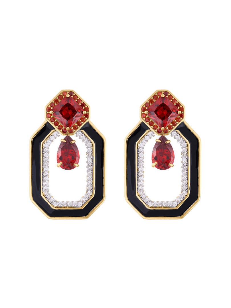 The Mesmera Misi Black & Garnet Earrings have a classic design with a modern twist, making them the perfect accessory to transform your looks from day to night with a touch of elegance and sophistication.