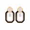 Crafted in bronze with 18k gold plating and white rhodium plating, adorned with faceted crystals in garnet tone, framed in an irregular octagon with crystal-toned microcrystals and black enamel. 925 sterling silver pins and posts.