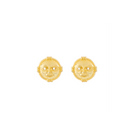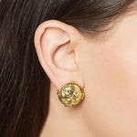 Aretes en metal bronce con baño de oro amarillo de 18k y baño de rodio e incrustación de microcristales color cristal.