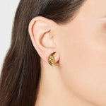 Aretes en plata ley 990 y bronce con baño de oro amarillo de 24k e incrustación de microcristales color cristal.