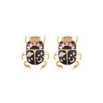 More than just jewelry, the Delirio Jepri Onix Earrings are a true amulet of protection, transformation, and wisdom. Crafted in bronze metal with 18 karat gold plating, white and black rhodium plating, and adorned with delicate inlays of black, yellow, and lilac microcrystals, which, together with the burgundy enamel technique, elevate every detail to a level of timeless style and sophistication.