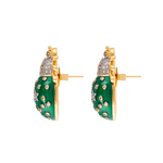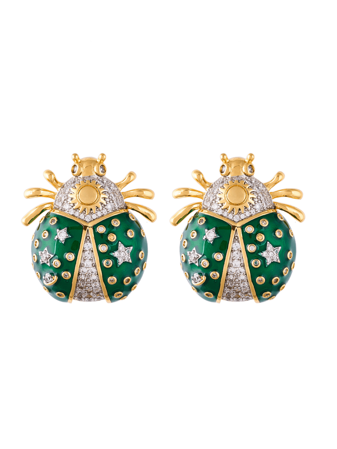 Made of bronze metal, with 18 karat gold plating, white rhodium plating, and zirconia inlay, with select enamel details.