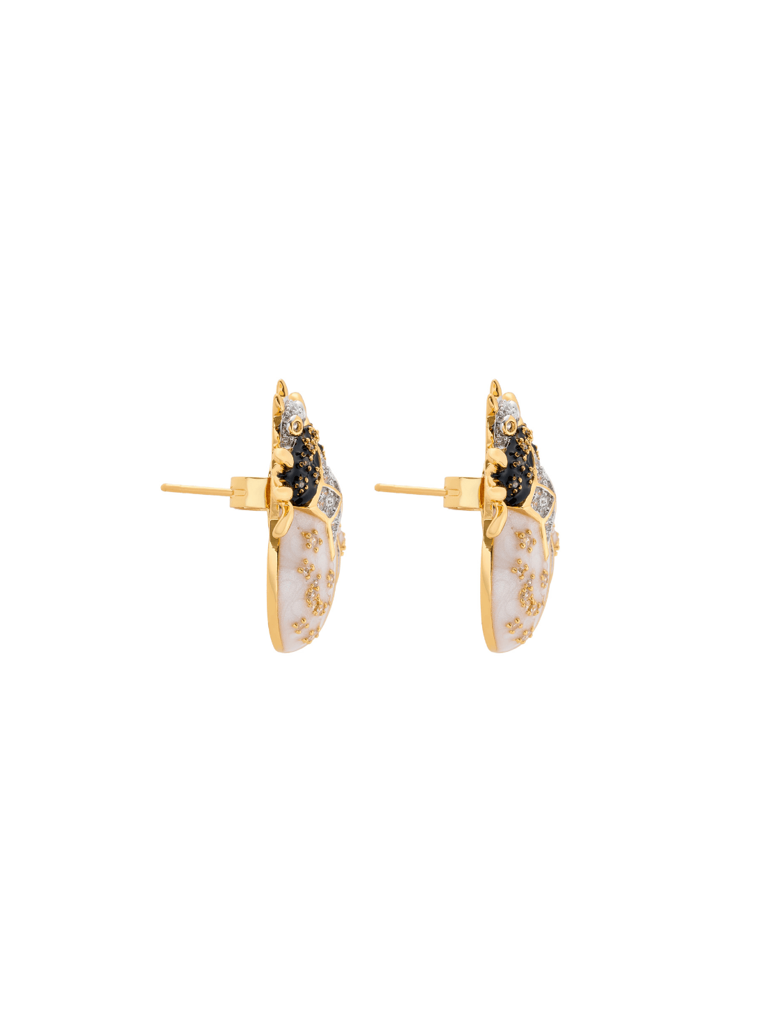 A jewel that connects with the serenity of the cosmos and the magic of nature. The Thea Nacre Studs combine the brilliance of 18 karat gold with the enigmatic radiance of black and white rhodium. Its zircons in shades of crystal, black, pearl and the magnetism of onyx intertwine with delicate touches of black enamel and pearl, evoking the hues of a celestial sunrise.