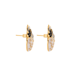 Crafted in bronze metal and 925 sterling silver pins, 18 karat gold plated, black rhodium plated and zircon inlay, with select enamel accents