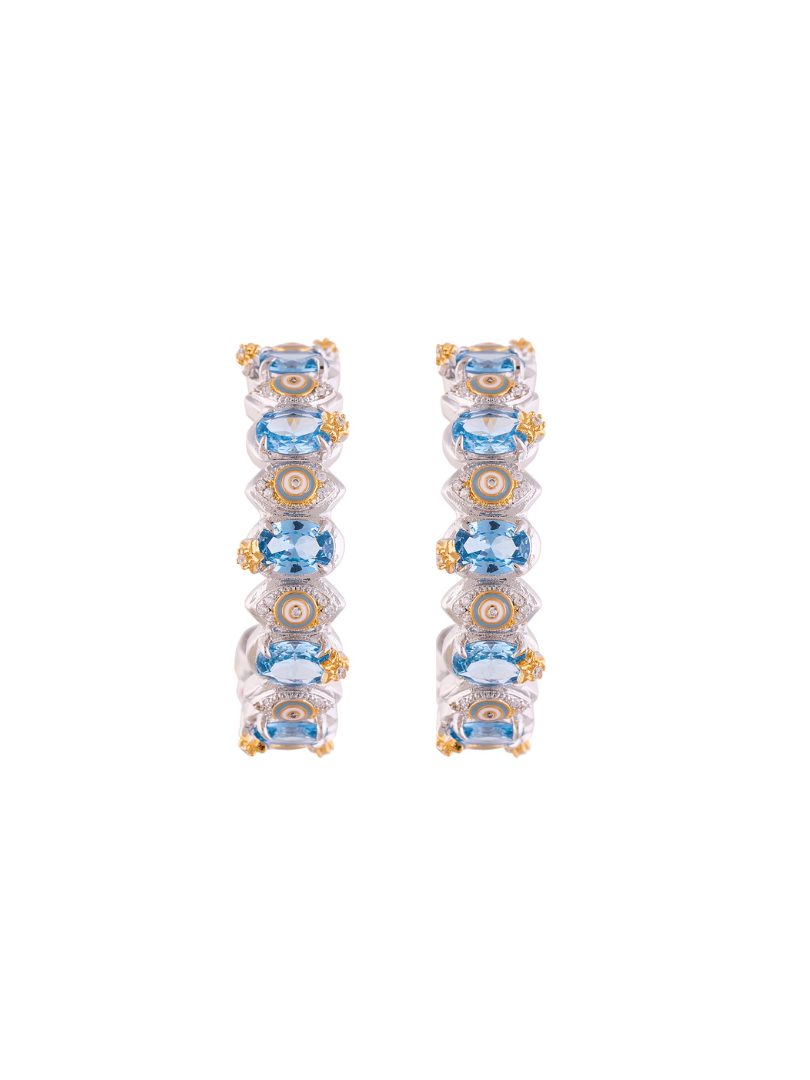 The Nilo Aqua Evil Eye Hoops are more than just jewelry — they are a symbol of protection. Their contemporary design with modern touches adds freshness, sophistication, and elegance to your outfits.