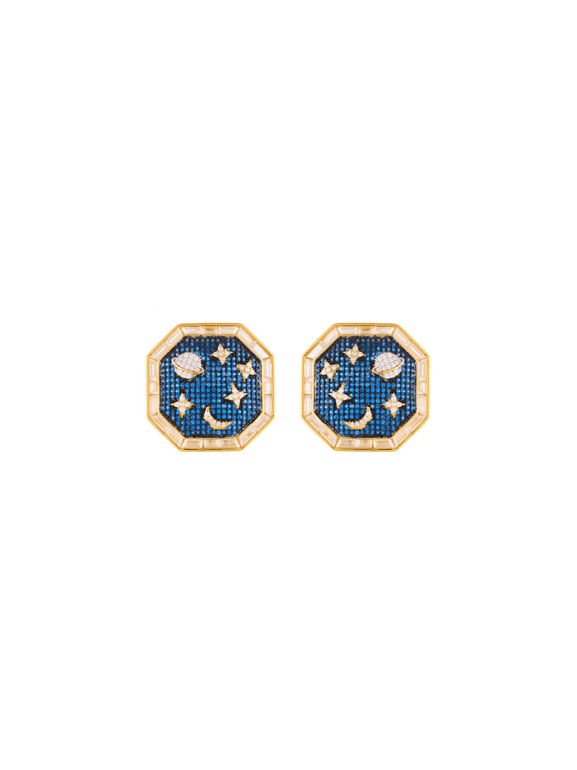 The Sabah Octagon Stud Earrings are the perfect accessory to complement your looks with a modern and celestial style! Their octagonal design adorned with sapphire and crystal-toned microcrystals creates the perfect balance between the mystical and the sophisticated.
