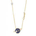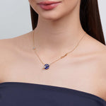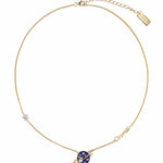 Cadena elaborada en bronce con baño de oro amarillo de 24k, baño de rodio e incrustación de microcristales color cristal.