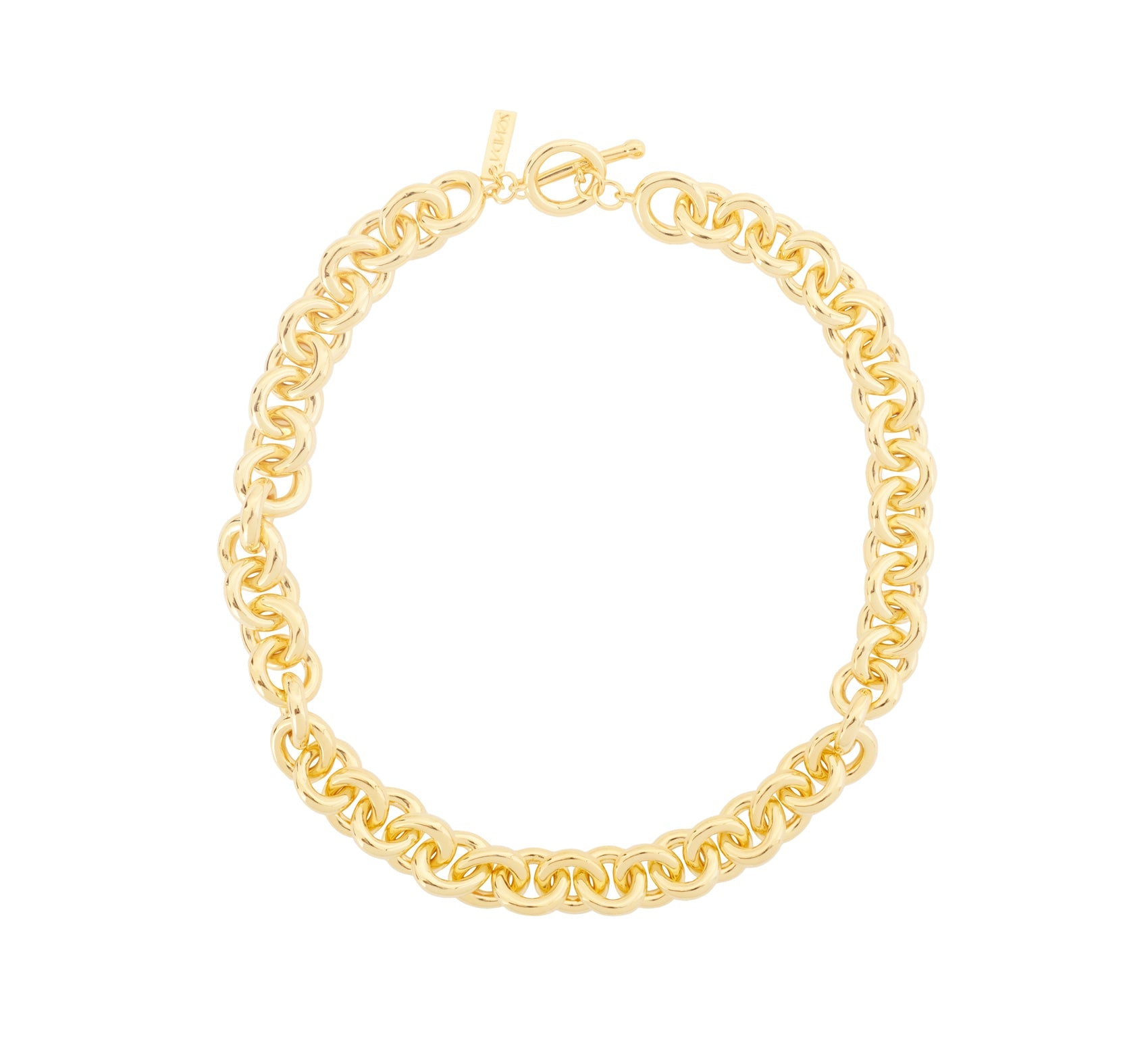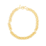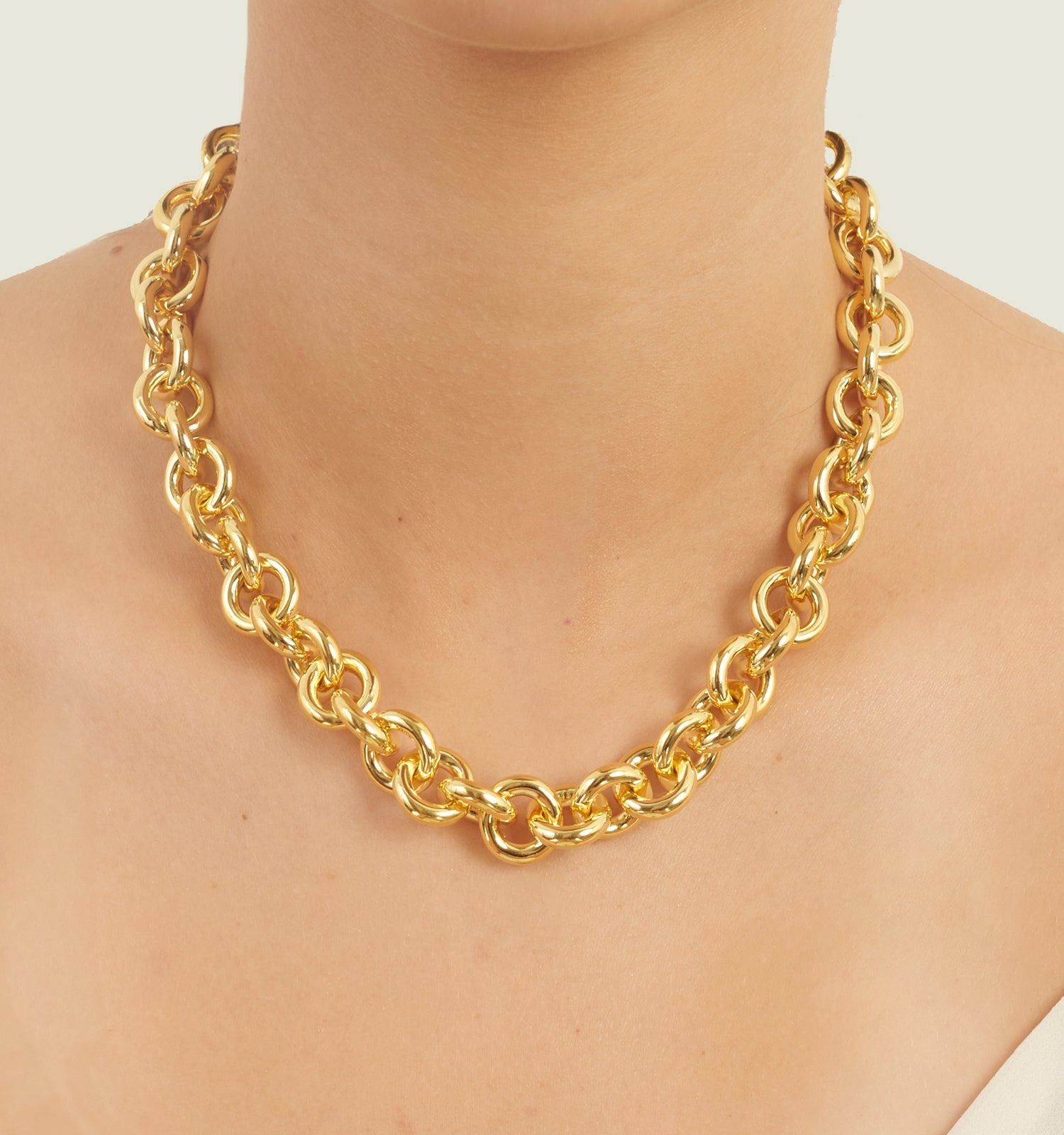 Cadena elaborada en bronce con baño de oro amarillo de 24k.