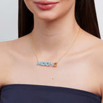 Cadena en plata ley 925 y bronce con baño de oro amarillo de 24k, baño de rodio e incrustación de microcristales color turquesa y amatista