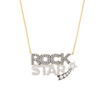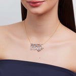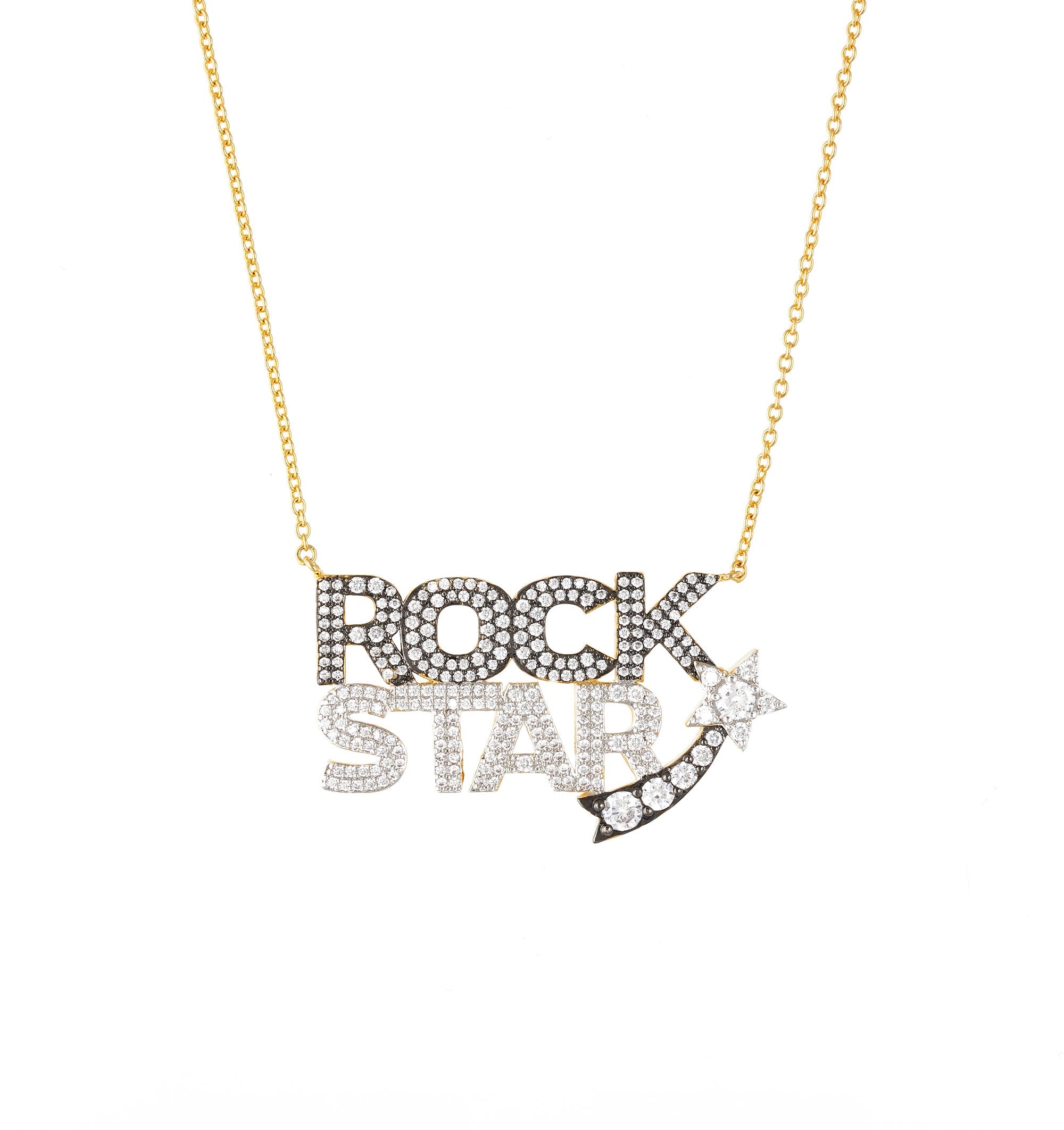 Cadena en plata ley 925 y bronce con baño de oro amarillo de 24k, baño de rodio y baño de oro negro e incrustación de microcristales color cristal.