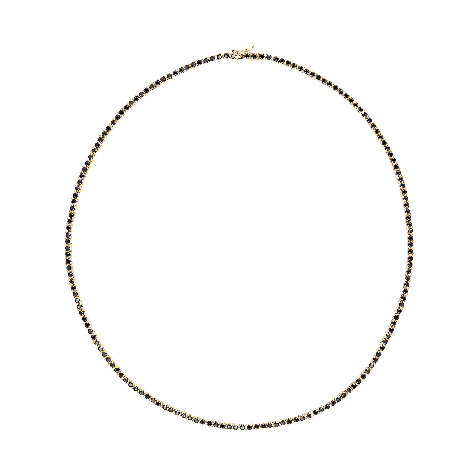 Cadena elaborada en bronce con baño de oro amarillo de 18k e incrustaciones de cristales color onix.