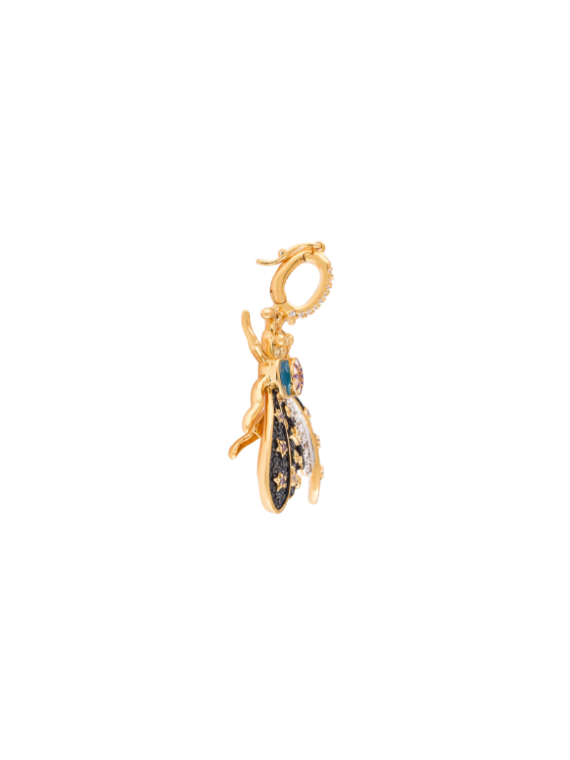A pendant that blends cosmic depth with Nile vitality. Crafted in bronze with 18K gold plating, white rhodium, and black rhodium. Decorated with microcrystals in yellow topaz, amethyst, crystal, petrol blue, and black, and finished with enamel in petrol blue, white, and purple.