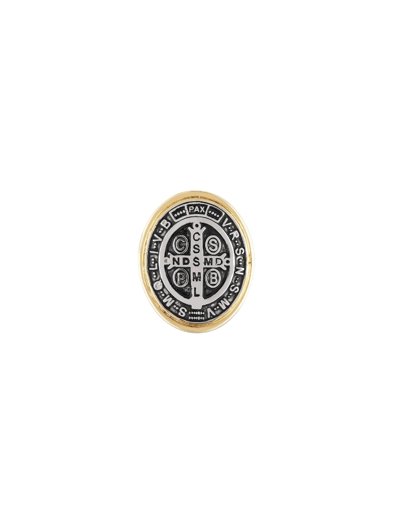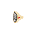 Anillo elaborado en plata con baño en oro amarillo, oro negro, rodio e incrustación de cristales color cristal
