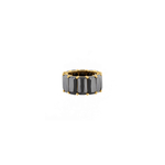 Acompaña tu outfit con los cristales del Anillo Gran Baguette Onix, elaborado en bronce con aleación de plata y baño de oro de 18K.
