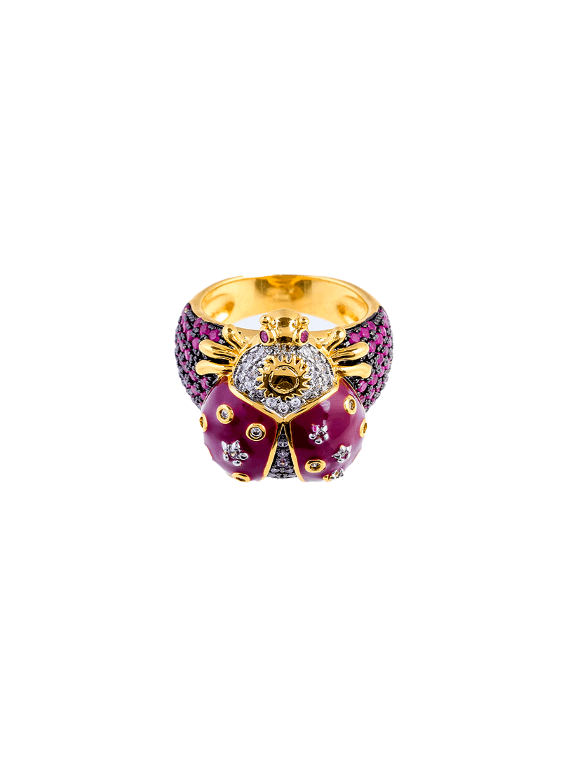 The perfect finishing touch to any outfit. Crafted in bronze with silver alloy, plated in 24K gold, white rhodium, and black rhodium, with cubic zirconia in amethyst, crystal, ruby, light garnet red, lilac, and enamel in garnet red or maroon.