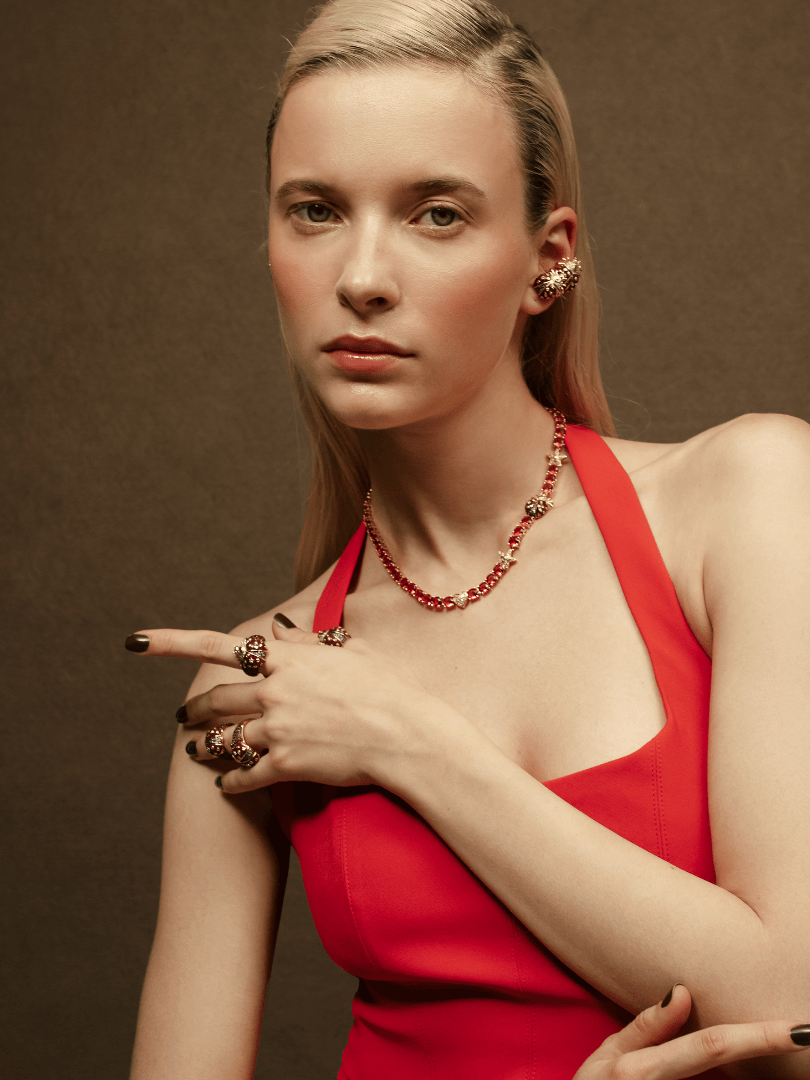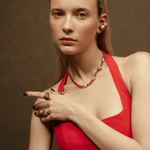 Our jewelry is made from silver and bronze, coated in 18k gold and rhodium, and adorned with natural stones, crystals, and select enamels.
