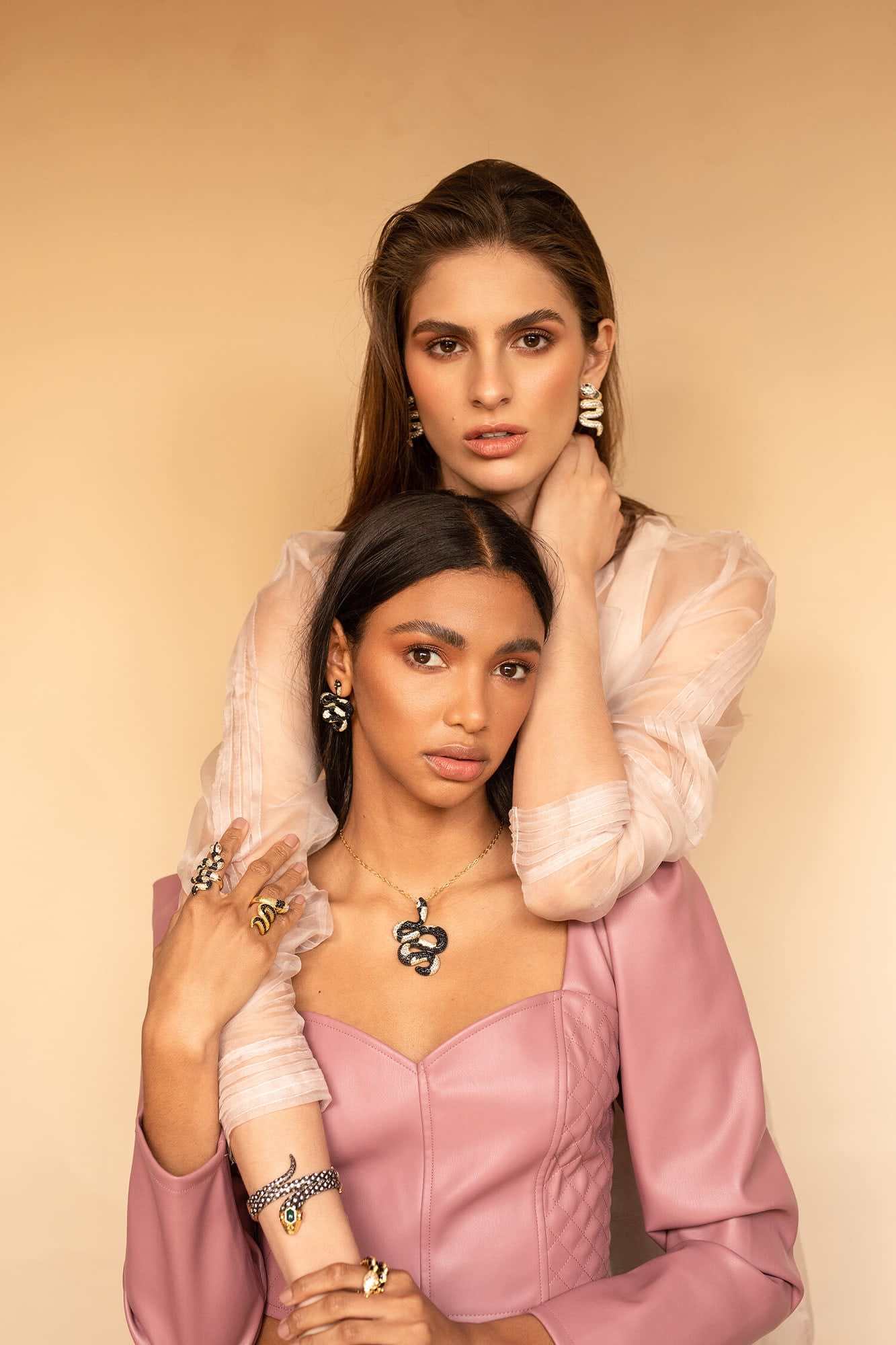 The goldsmiths, artisans, and jewelers at SENDA Nelly Rojas use agates, labradorites, turquoise, lapis lazuli, amethysts, jade, jasper, obsidian, crystal quartz, rutile quartz, tiger's eye, cat's eye, opal, onyx, and topaz to bring our designs and artistic creations to life. Our latest collections are characterized by micro-crystal cubic zirconia inlays and enameling techniques.