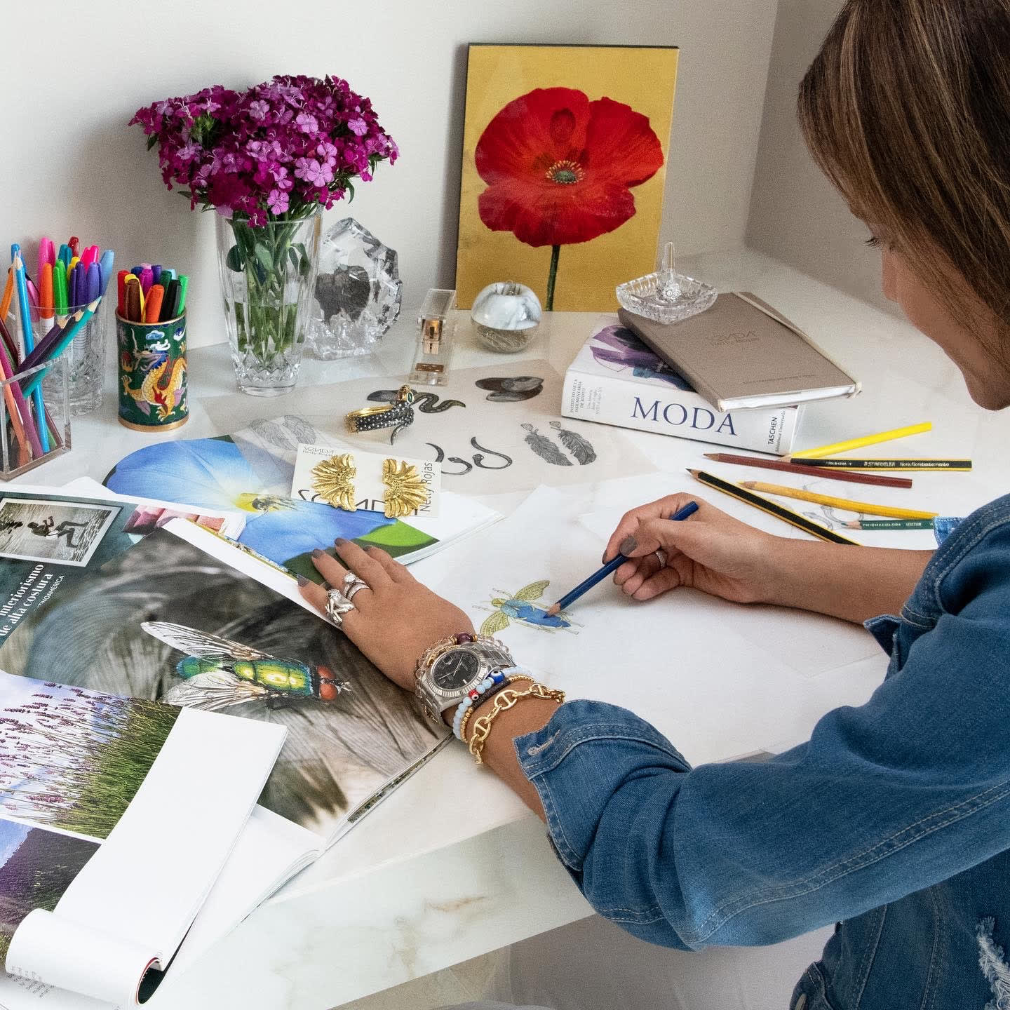 “For me, everything inspires me: a feeling, a symbol, a country, a culture, nature, an artist. Often, a semiprecious stone serves as the basis for structuring my ideas; from there, I begin to construct unimaginable designs.”