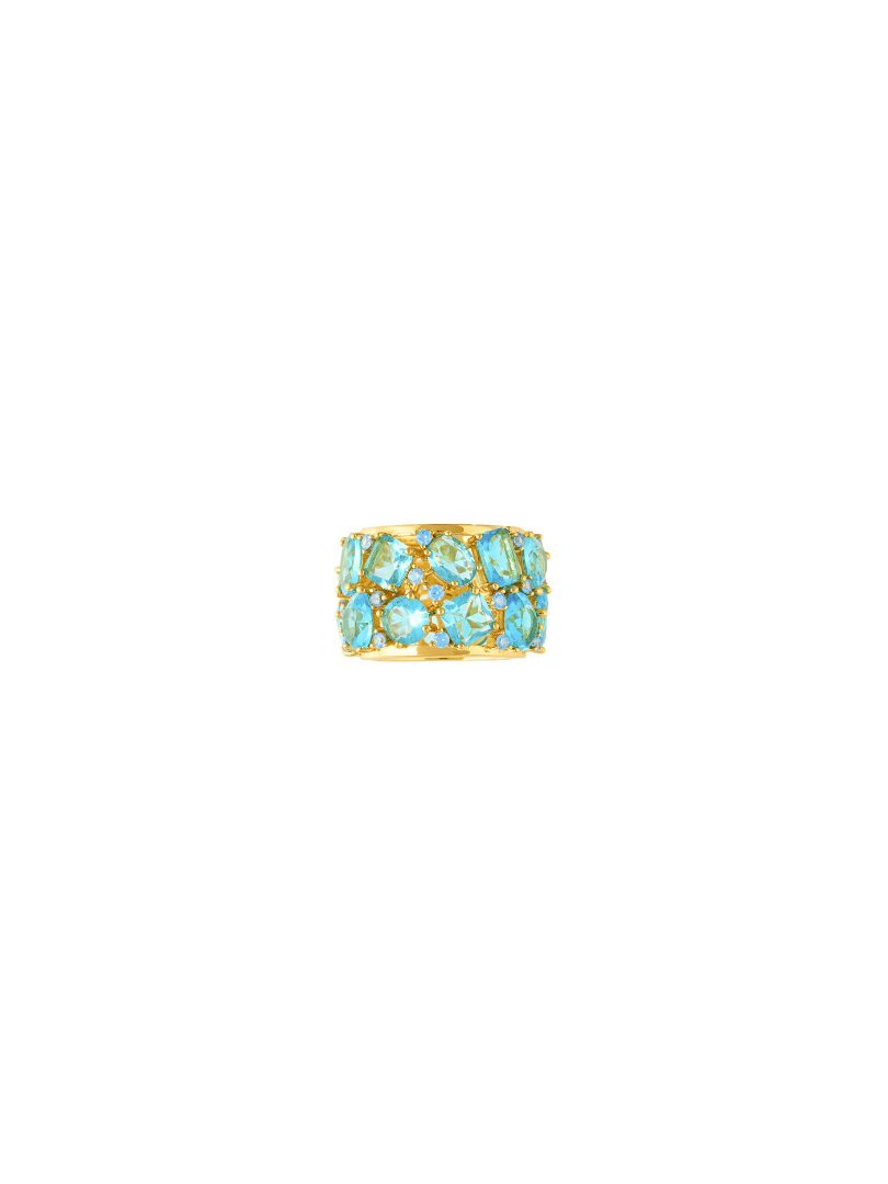 Anillo con baño en oro de 24k e incrustación de cristales color turquesa.