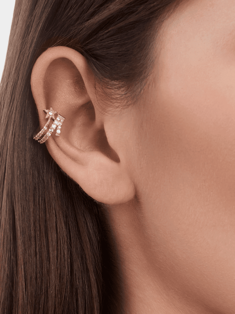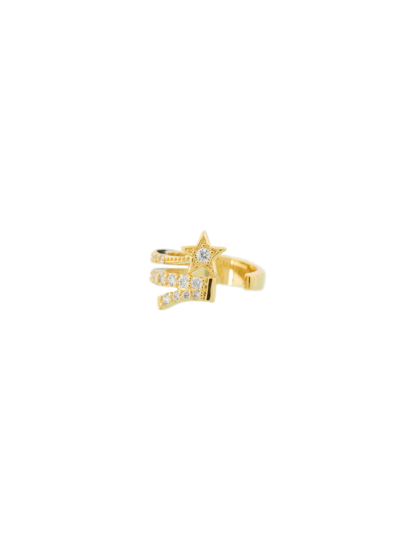 Ear cuff en plata ley 990 y bronce con baño de oro de 24k e incrustación de microcristales color cristal.