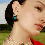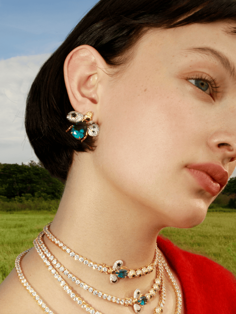 Our jewelry is made from silver and bronze, coated in 18k gold and rhodium, and adorned with natural stones, crystals, and select enamels.