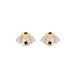 Crafted in bronze metal and 925 sterling silver pins, 18 karat gold plated, white rhodium plated, and zircon inlay, with select enamel details