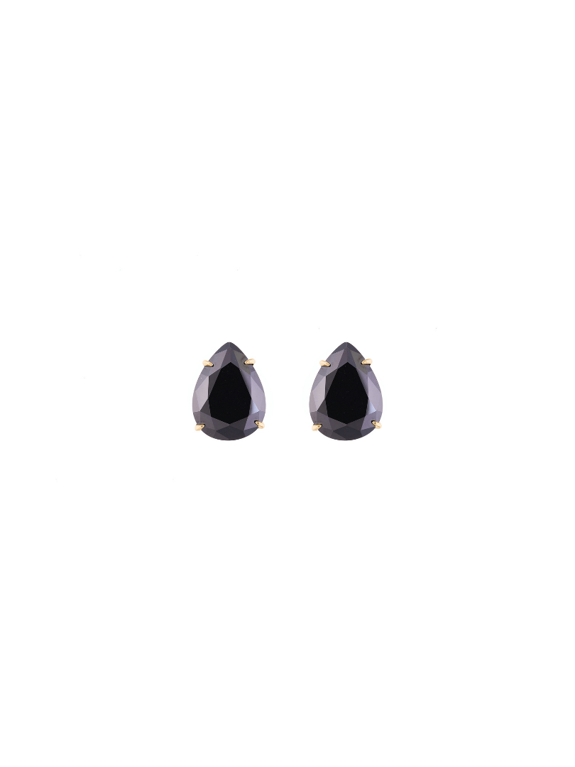 Crafted from a mix of bronze and silver, plated in 18k gold and adorned with a faceted black crystal, they are the perfect accessory to complement both day and night looks.
