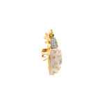 The Royal Thot Pearl Brooch, is a jewel that fuses the delicacy of bronze with a magnificent 18 karat gold plating and white rhodium. Its translucent crystals sparkle with the magic of light, while the enamel in a captivating mother-of-pearl tone gives a touch of delicacy and distinction.