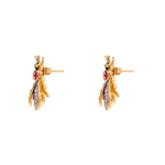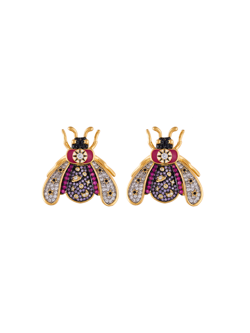 The Vespa Happi Burgundy Studs evoke the depth of the cosmos and the life of the Nile River, a jewel that combines elegance and eternal beauty. Crafted in bronze metal with 18karat gold plating, white rhodium, and black rhodium, enriched with dazzling zircons in ruby, amethyst, black, and crystal tones. The burgundy, white, and black enamel techniques enhance its unique design, creating a captivating play of contrasts.